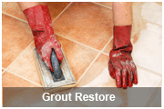 The pictures are Cleaning grout and tile, grout repair, regrout, recaulking, cleaning and sealing tile, epoxy colorizing system.